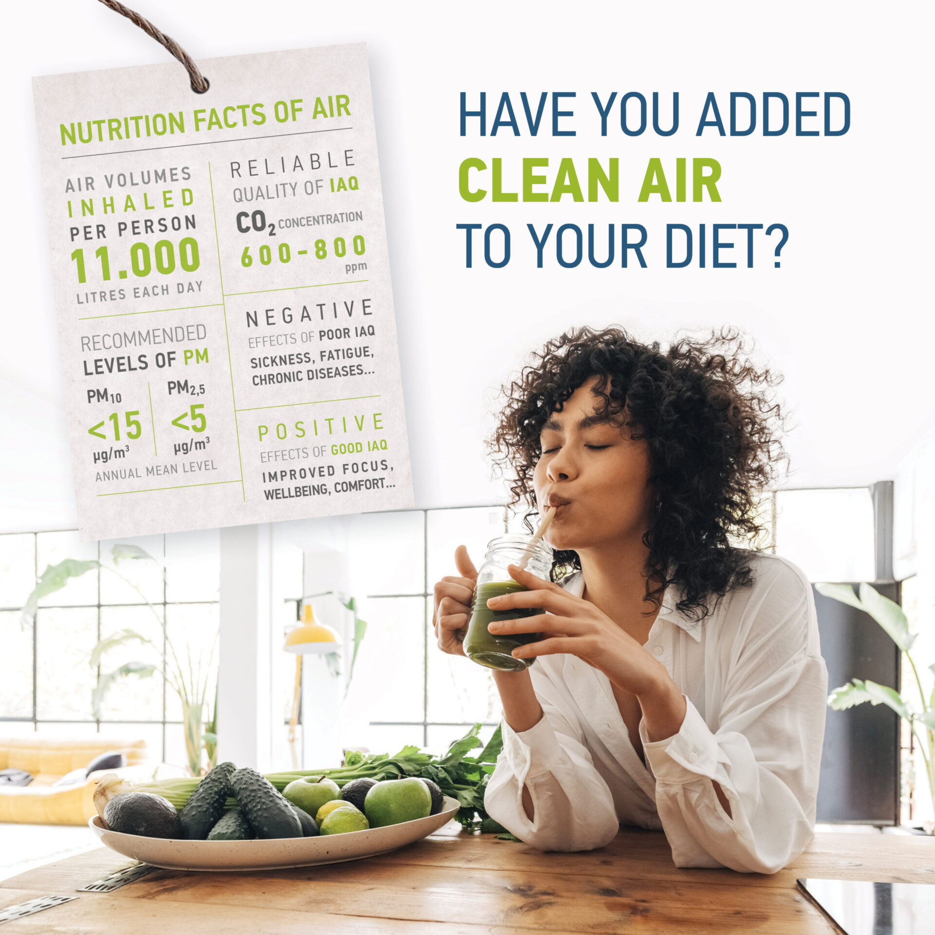 We spend 90% of our time indoors, and we should not accept poor air quality. Clean air is a part of healthy living.